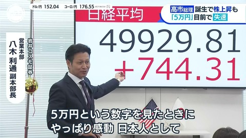 日経平均先物ひと足早く5万円の大台に到達、2万円一番乗り男は5万円一番乗りに失敗