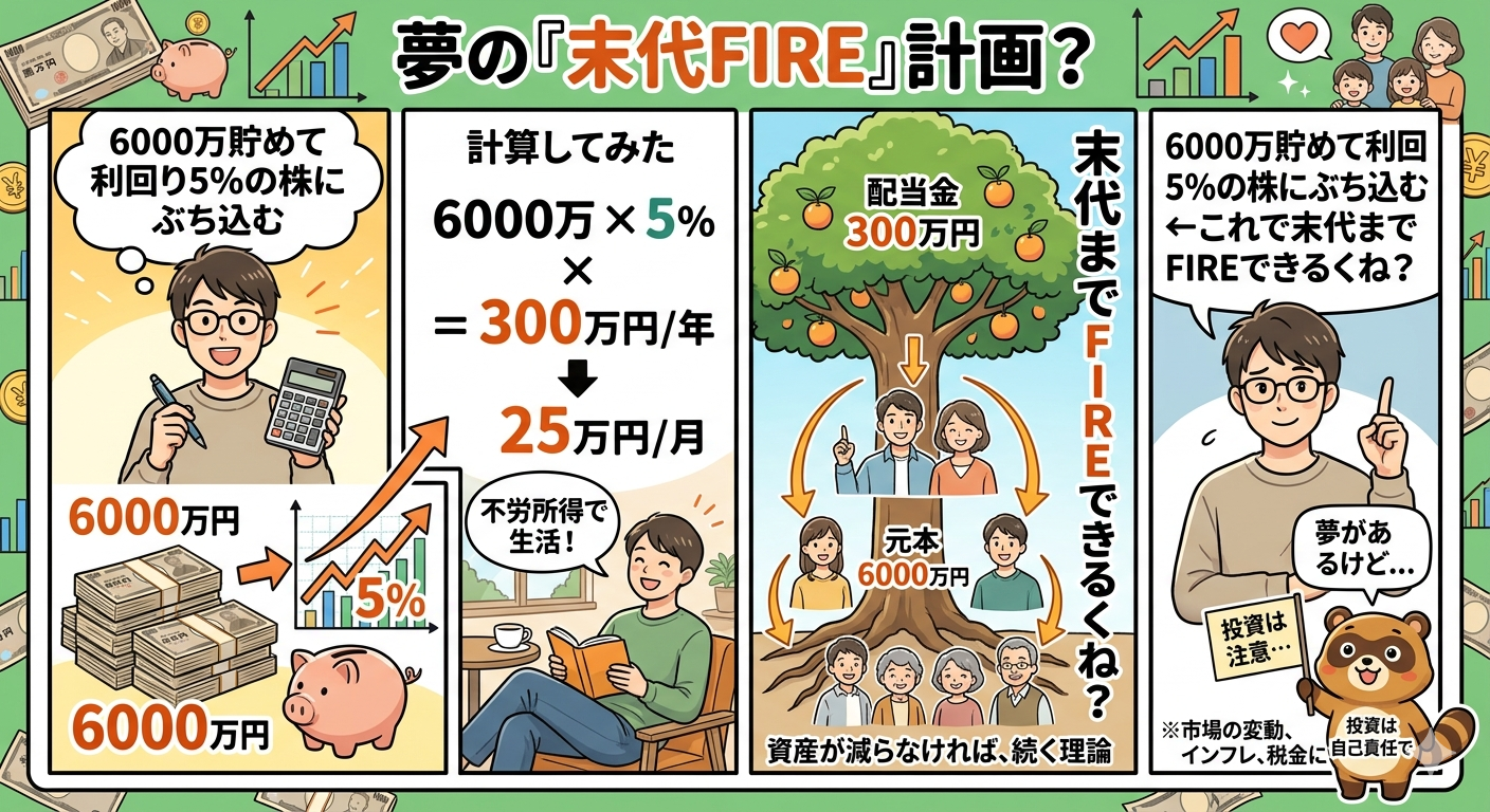 6000万貯めて利回り5%の株にぶち込む←これで末代までFIREできるくね?